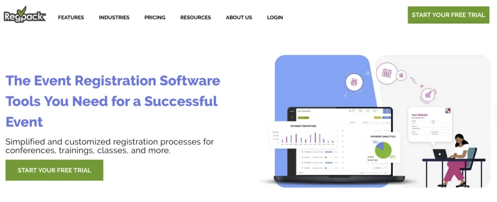 - It lets you build event pages and microsites so people can learn about your event, register, and manage their participation online.